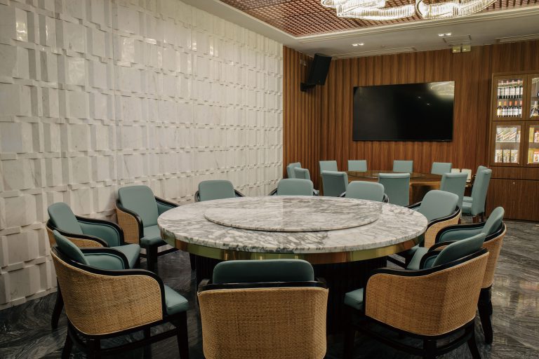 佔地達5800呎,共有5間獨立貴賓房分別可容納4-48人,每個房間均提供獨立洗手間、獨立的卡拉OK設備,近100吋的LED電視超級大螢幕,絕對衝擊你的視覺享受,房間與房間之間,設計上特別注重隔音降噪性能,私隱度高,讓客人在專屬的私人豪華包厢內細味佳餚,盡情地享受難忘時光。