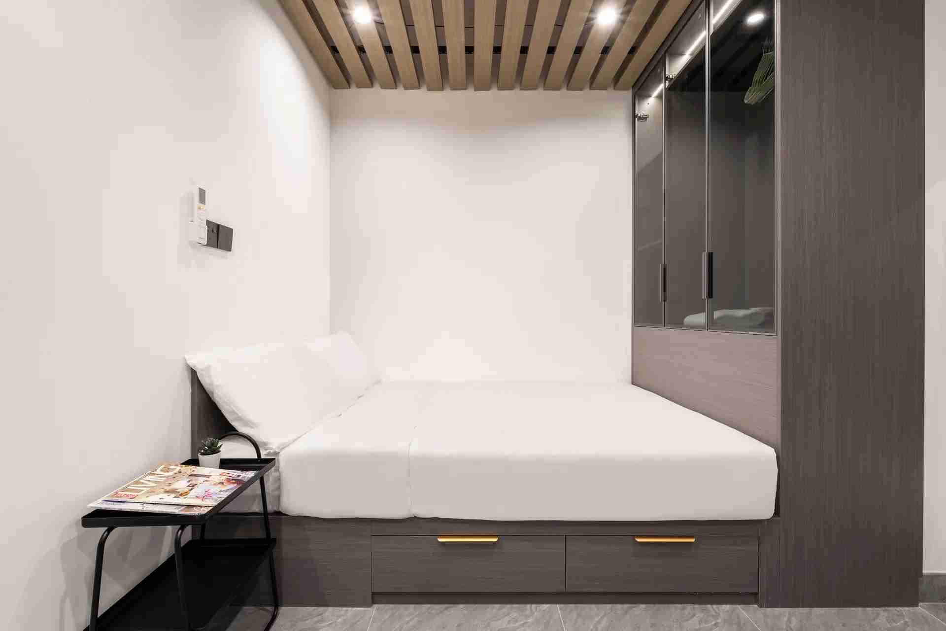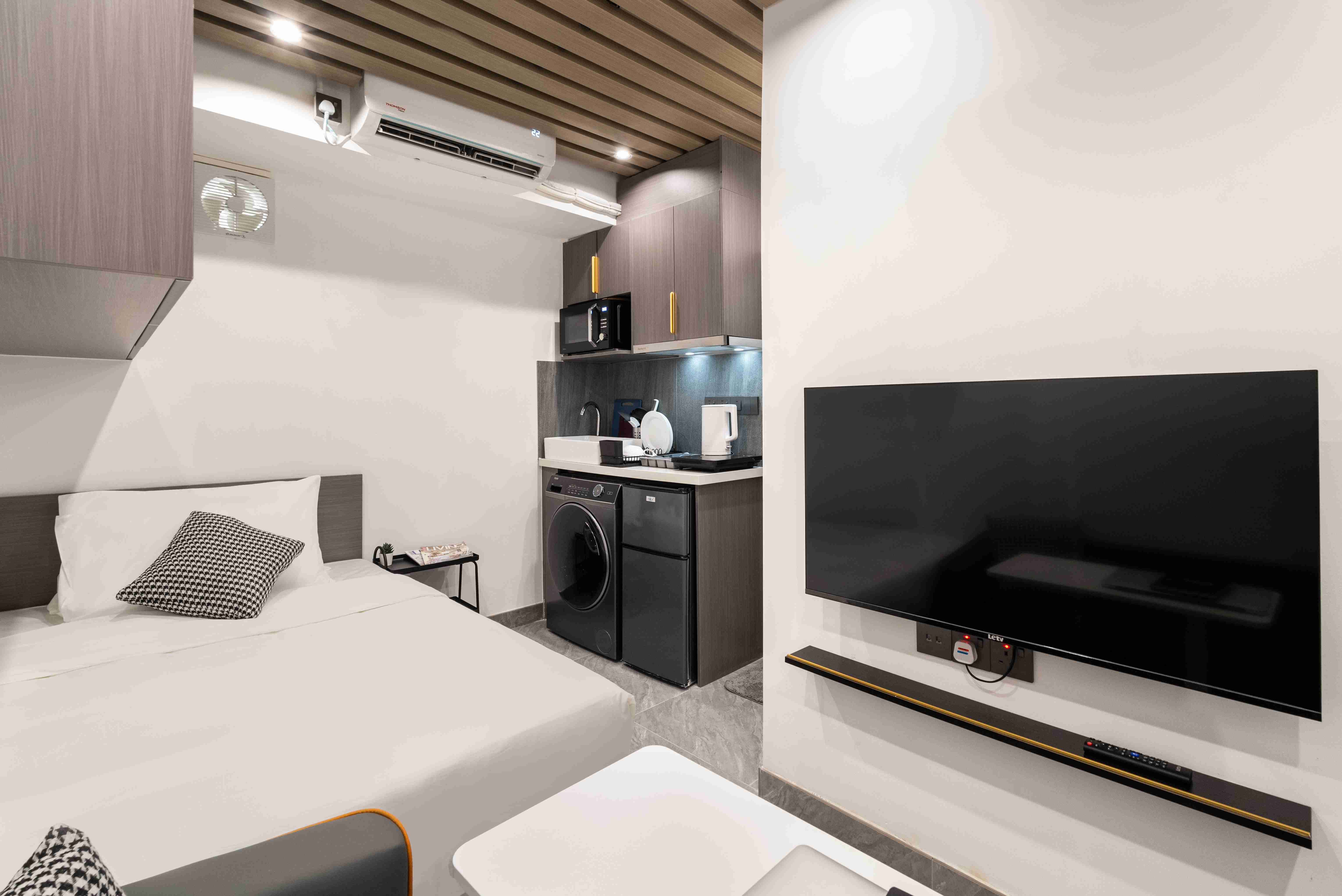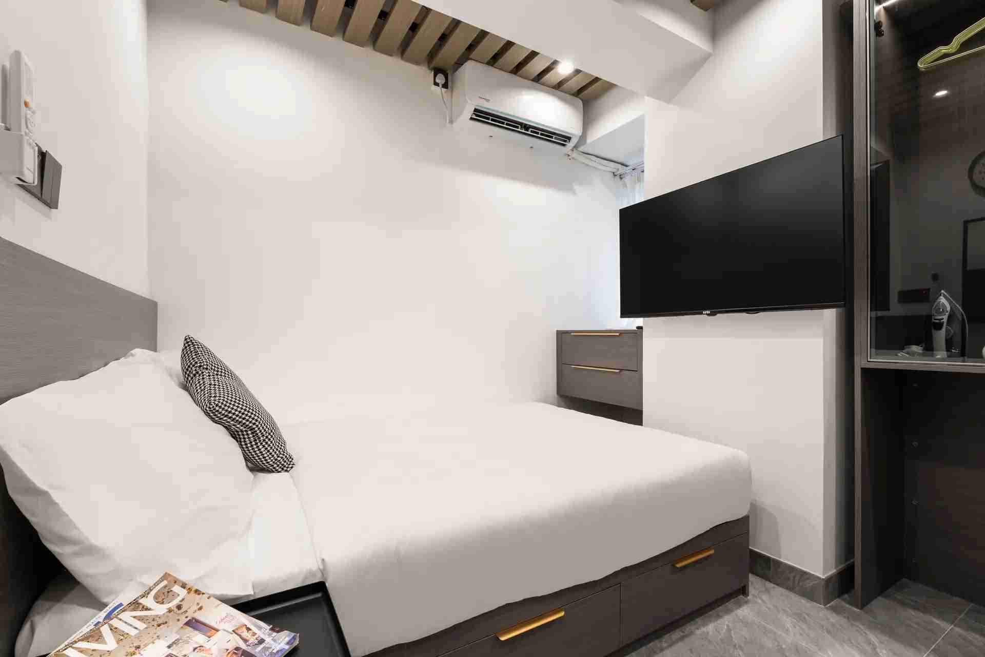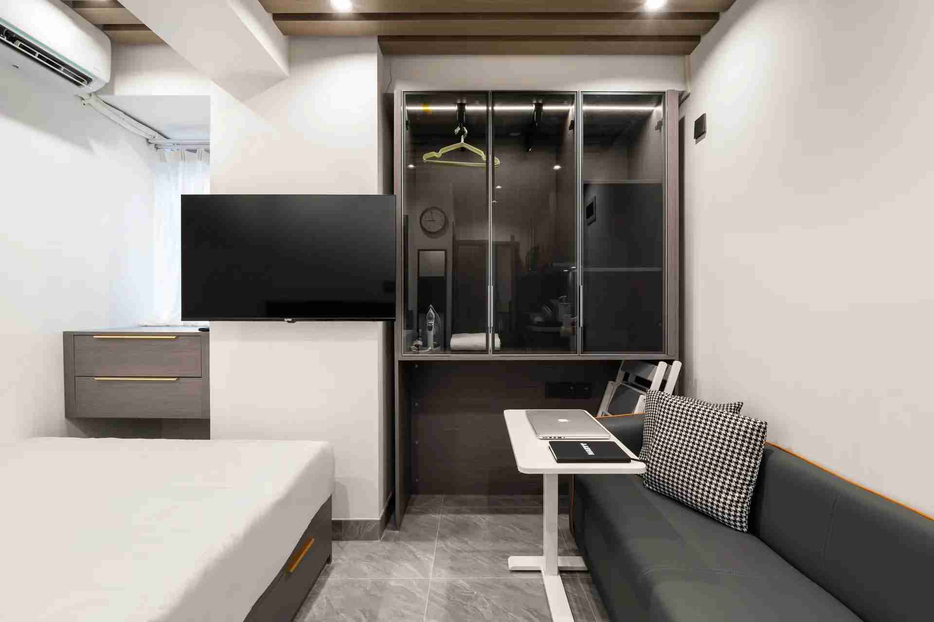 Habyt 提供位於西營盤的精美設計單間公寓,讓您體驗高尚的都市生活 🌆。這個陽光充足的單位擁有寬敞的內部空間,配備豪華的雙人床、定制衣櫃解決方案和優雅的客廳 🌞🛏️。現代化的小廚房配有高檔設備,精緻的獨立衛浴提供額外的舒適與便利 🚿🍽️。